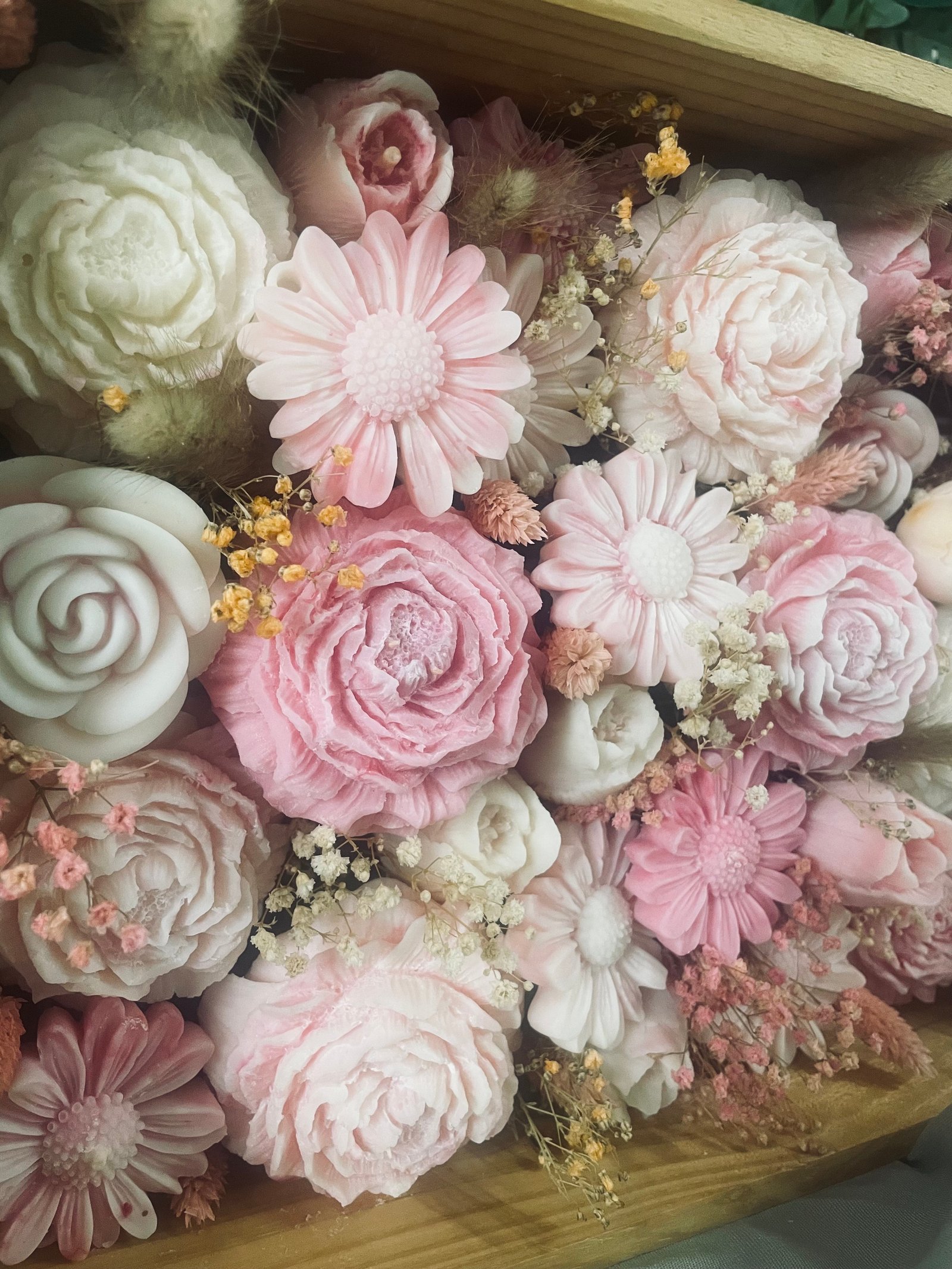 Les fleurs en cire peuvent être utilisées comme fondants parfumés, offrant une expérience olfactive renouvelable. Une fois la senteur dissipée, vous pouvez simplement remplacer les fleurs par de nouvelles pièces, disponibles sur commande.