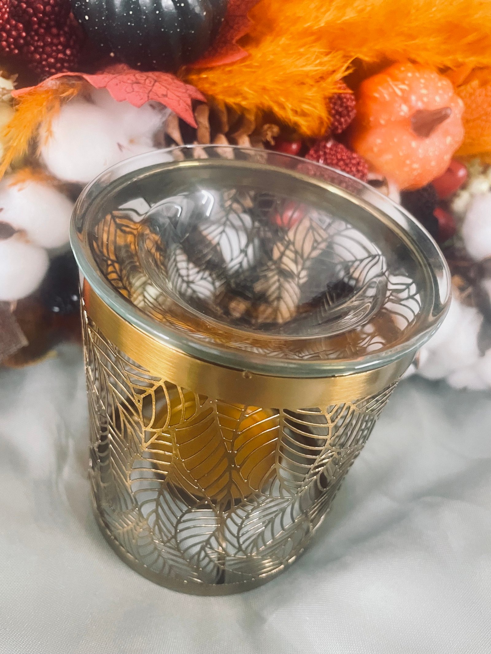 Brûle-parfum en métal et verre, inspiré des feuill... Plus